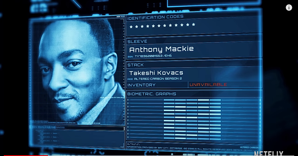 Ricordiamo che la serie è ambientata in un mondo futuristico in cui le menti umane sono state digitalizzate e le persone possono trasferire la propria coscienza da un corpo all’altro. Il nostro protagonista Takeshi Kovacs interpretato da Joel Kinnama, nell’ultima puntata della prima stagione deve trasferire la propria coscienza in un nuovo copro per proseguire il suo viaggio… Per questo motivo nella seconda stagione Takeshi Kovacs sarà interpretato da Anthony Mackie, il Falcon dell’Universo Cinematografico Marvel.