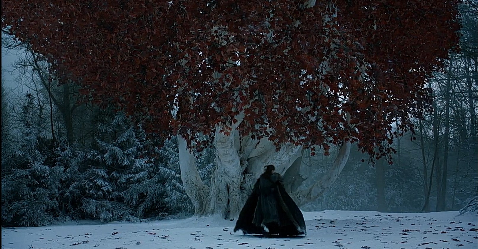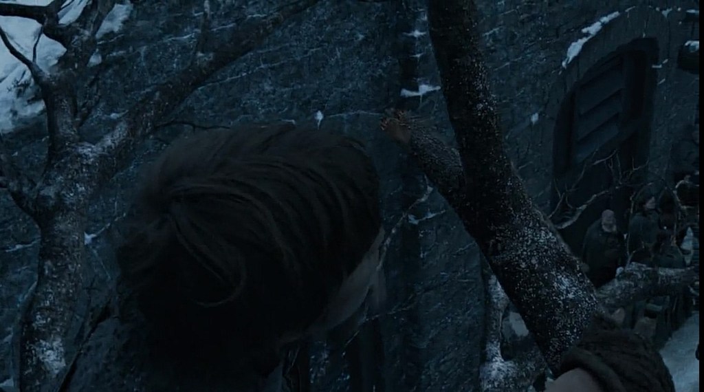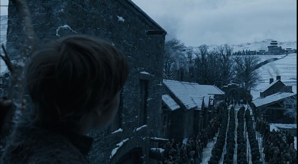 La puntata, intitolata Grande Inverno, inizia con un chiaro riferimento al pilot della serie con l’arrivo degli Immacolati a Grande Inverno visti con gli occhi di un bambino che si arrampica su un albero (come Bran si arrampica sulla torre per vedere l’arrivo di Robert).