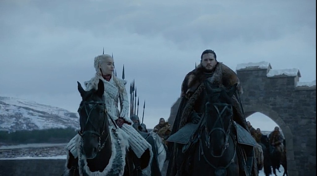 Dopo il promo della settimana scorsa mi aspettavo di vedere per la prima volta Jon che valca Rhaegal… HBO mi ha subito accontentato e in più abbiamo visto Drogon geloso in un momento di romanticismo di coppia tra Jon e Daenerys.