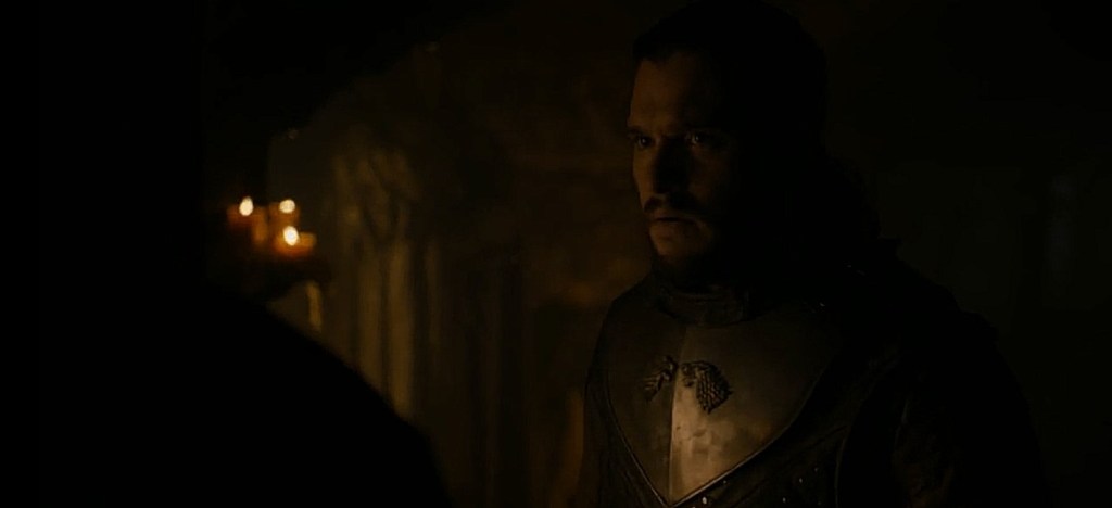 Senza ogni dubbio la parte dedicata a Sam è la più importante, il nerd più famoso di Westeros scopre da Daenerys la fine del padre e del fratello che sono stati usati come arrosticini dai draghi della Regina. Sconvolto dalla notizia incontra Bran ( che durante la puntata appare sempre dal nulla in tutti i luoghi di Grande Inverno) che è giunto il momento di dire a Jon del suo lignaggio e che deve farlo lui! Dopo aver incontrato Jon nella cripta uno sconvolto Sam, racconta della fine del padre e del fratello e poi spara la bomba! Non sono un re! Invece si! lo sei sempre stato! Quindi dopo Lord Comandante senza volerlo, dopo Re del Nord incoronato dai Lord del Nord ora Jon scopre di essere il Re dei Sette Regni!