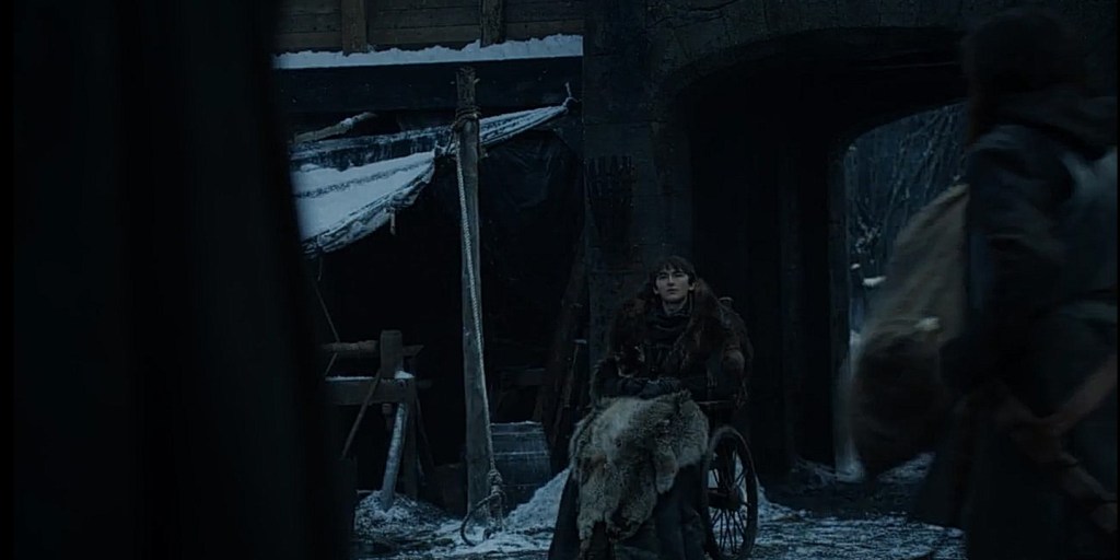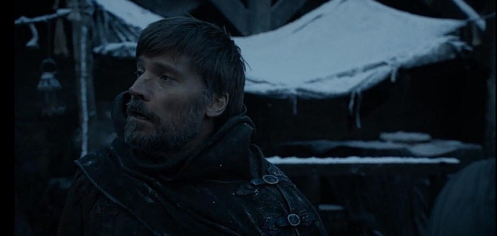 La puntata finisce con l’arrivo di Jaime Lannister a Grande Inverno che dopo aver smontato e osservato le mura da cui è iniziato tutto, incrocia lo sguardo con Brann (anche in questo caso spuntato dal nulla con la sedia a rotelle… Per me si sposta con il tele trasporto della Discovery).