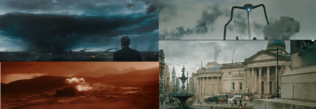 Dalle prime immagini subito notiamo che la miniserie è un adattamento più fedele alla versione originale del romanzo. La Guerra dei Mondi prodotta dalla BBC è ambientata a Londra nell’Inghilterra verso la fine del 1800, mentre nelle versioni cinematografiche del 1953 di Byron Haskin e in quella del 2005 di Steven Spielberg l’azione era stata spostata nell’America contemporanea.