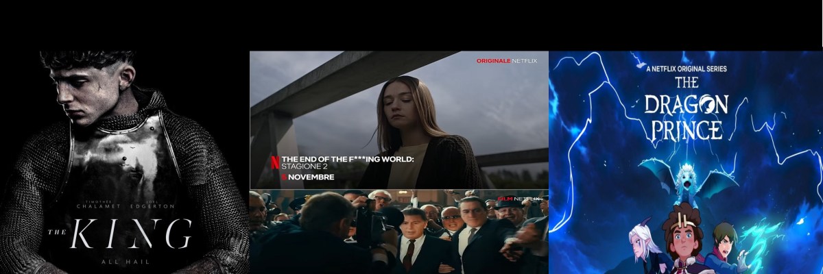 Da non perdere i film The King, The Irishman e Dove la terra trema, mentre tra le serie TV tornano Knightfall, The End of the F***ing World e The Crown, tra gli anime arriva Mobile Suit Gundam: Iron-Blooded Orphan.