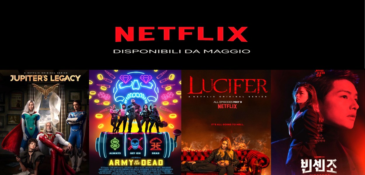 Da non perdere Jupiter’s Legacy, Lucifer 5B, Ragnarok e Army of the Dead. Tra gli anime del mese arrivano Castlevania 4, Kuroko’s Basket 2 e Eden. Tra i K-Drama segnaliamo Vincenzo.