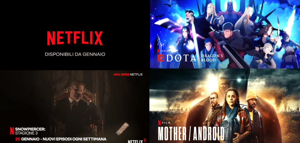 Da non perdere Snowpiercer 3, Ozark 4, Manifest e Mother/Android. Tra gli anime segnaliamo The Orbital Children e DoTA: Dragon’s Blood (libro due)