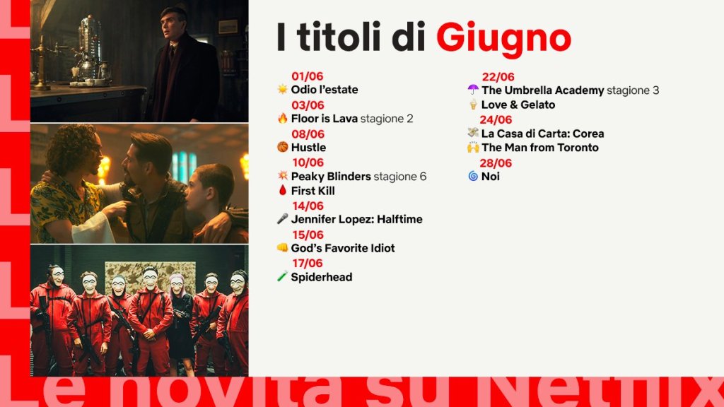 Da non perdere Peaky Blinders 6, The Umbrella Academy 3 e Hustle. Tra gli anime arrivano BASTARD!! – Heavy Metal, Dark Fantasy e Spriggan. Tra i k-drama segnaliamo Money Heist: Korea – Joint Economic Area
